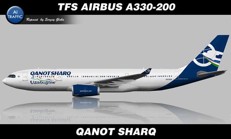 Ливрея в цветах узбекской авиакомпании "Qanot Sharq" для грузовой модели AI-трафика TFS Airbus A330-200 с двигателями RR.