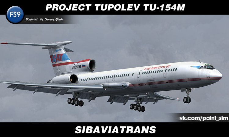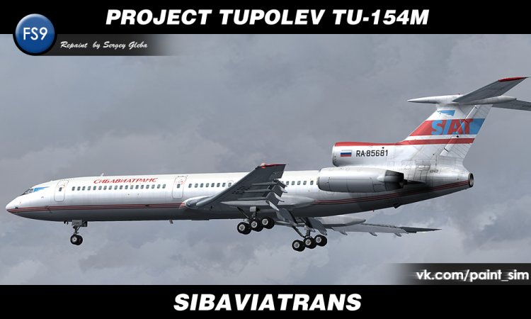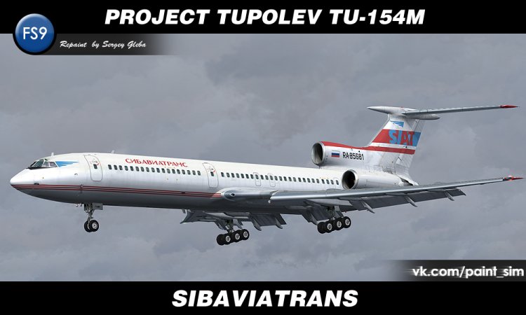 Ливрея в цветах российской авиакомпании "Сибавиатранс" для бесплатной модели самолёта Project Tupolev Ту-154М сделана на ките Максима Соломина aka marshal.